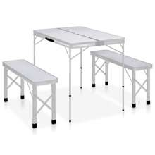 Składany stolik turystyczny z 2 ławkami, aluminium, biały