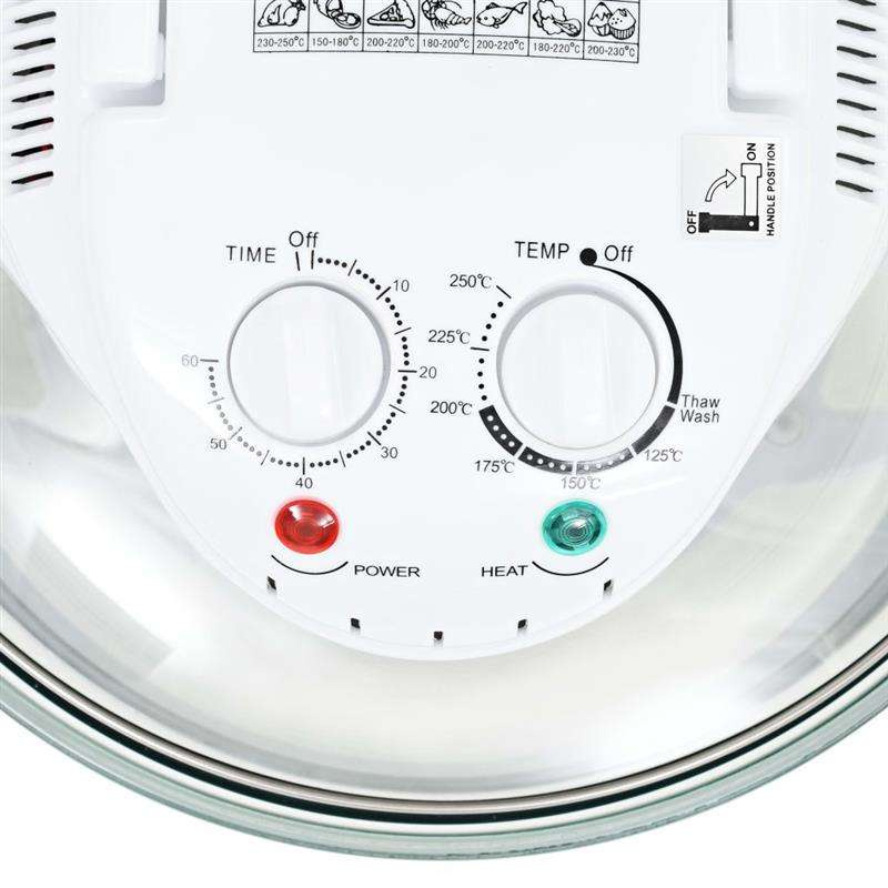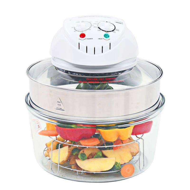 Misa piekarnika wykonana została ze szkła, można więc obserwować proces przygotowania posiłku. Duża pojemność 12 L + 5 L (z załączonym pierścieniem zwiększającym litraż) pomieści spore ilości jedzenia. Piekarnik działa poprzez cyrkulację gorącego powietrza wokół potrawy, w sposób równomierny i całościowy, dzięki czemu pracuje lepiej niż podobne urządzenia. Dzięki temu jest energooszczędny i szybszy niż tradycyjne piekarniki. Pierścień zwiększający pojemność pozwoli rozbudować przestrzeń do przygotowania większych posiłków. Wśród załączonych akcesoriów znajdą się: dolny ruszt, górny ruszt, szczypce, pierścień i stojak na pokrywę.