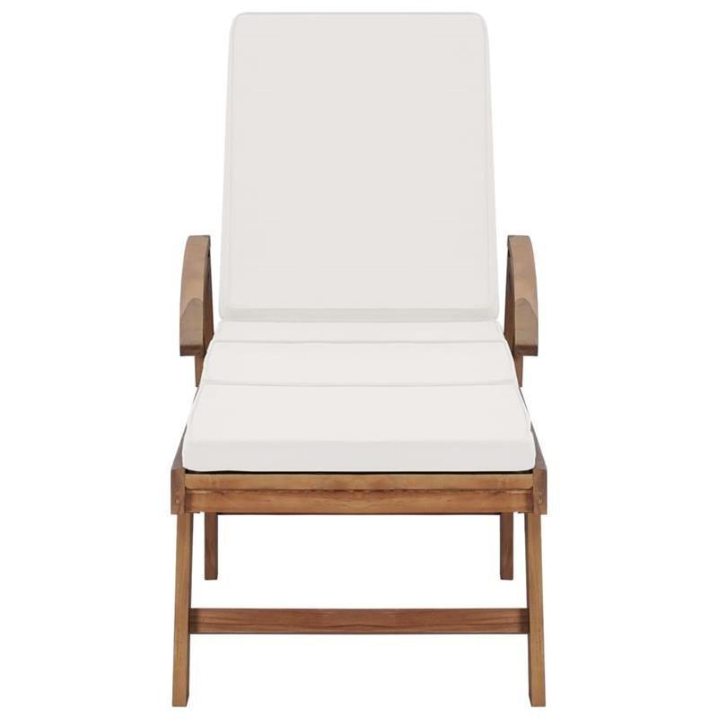 Leżak z poduszką, lite drewno tekowe, kremowy