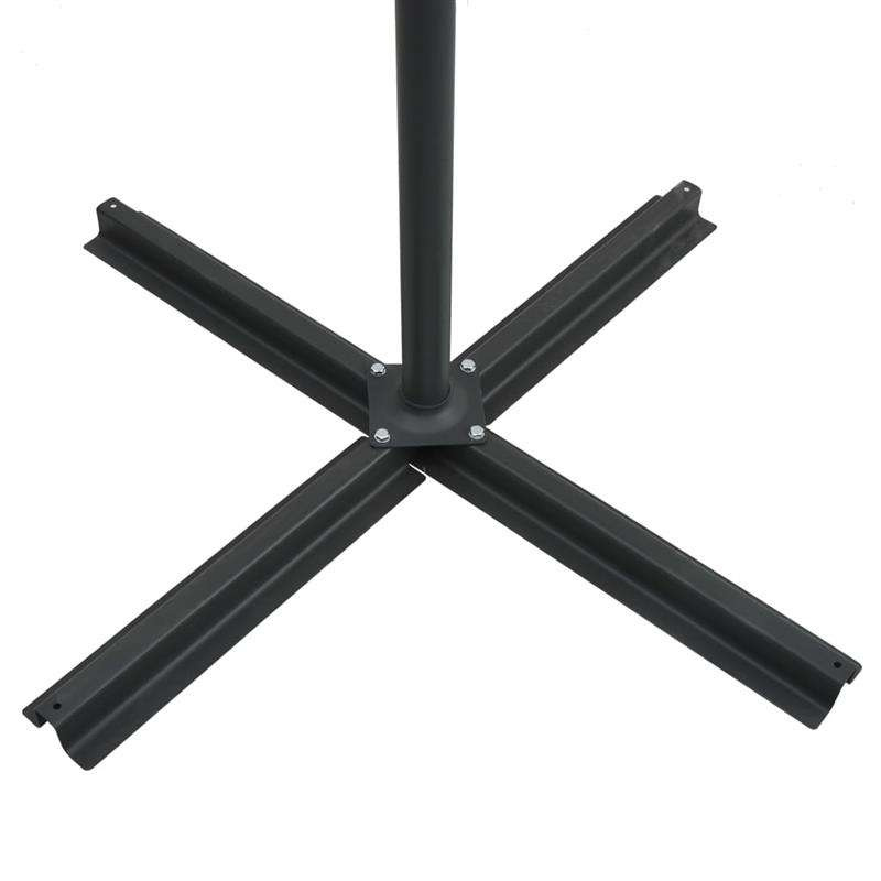 Wykonana z chroniącego przed promieniowaniem UV i nieblaknącego poliestru czasza parasola zapewnia optymalną ochronę przed słońcem i jest łatwa w czyszczeniu. Parasol posiada 24 zasilane solarnie diody LED, które automatycznie oświetlą Twoją przestrzeń na zewnątrz i stworzą przytulną, romantyczną atmosferę, gdy tylko zajdzie słońce. Solidna, krzyżowa podstawa nadaje stabilność konstrukcji. Wyjątkowa forma parasola pozwala na jego przechylanie i obracanie o 360 stopni, aby blokować rażące słońce. Za sprawą mocnego, stalowego słupka i 8 wytrzymałych żeber nasz parasol jest bardzo stabilny i wytrzymały. Można go łatwo otworzyć i zamknąć za pomocą mechanizmu z korbką. Produkt jest łatwy w montażu.