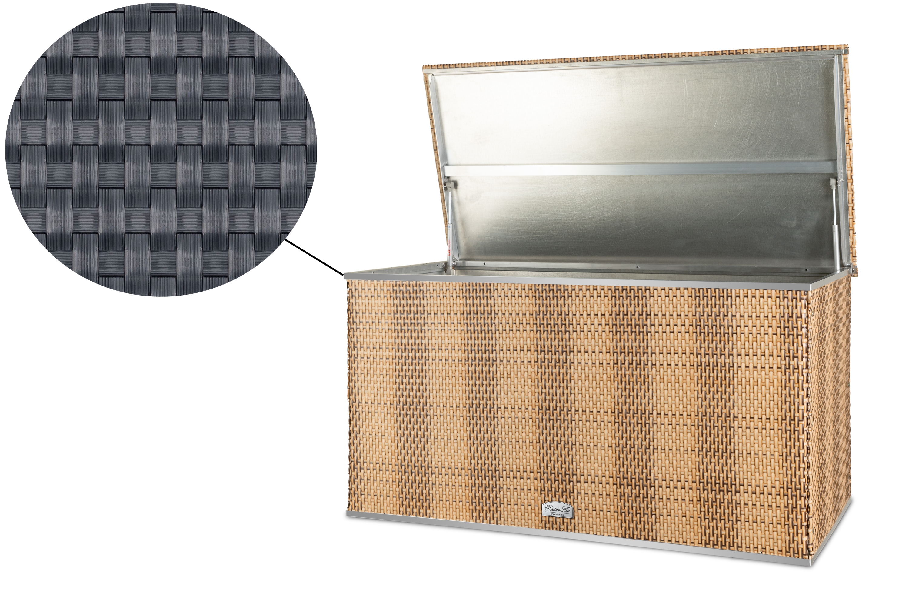 Skrzynia na poduchy z blachy ocynkowanej pokryta technorattanem – składana, elegancka i trwała