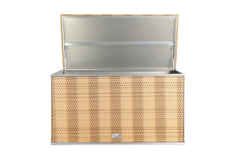 Skrzynia na poduchy z blachy ocynkowanej pokryta technorattanem – składana, elegancka i trwała
