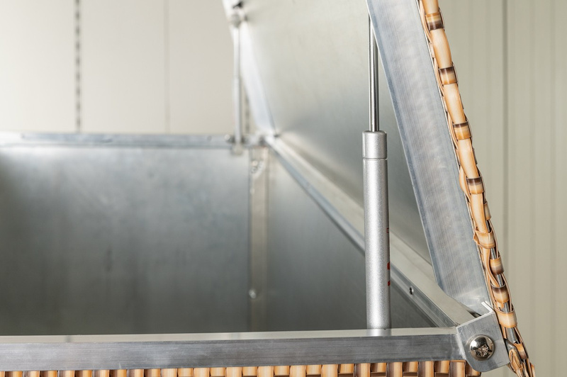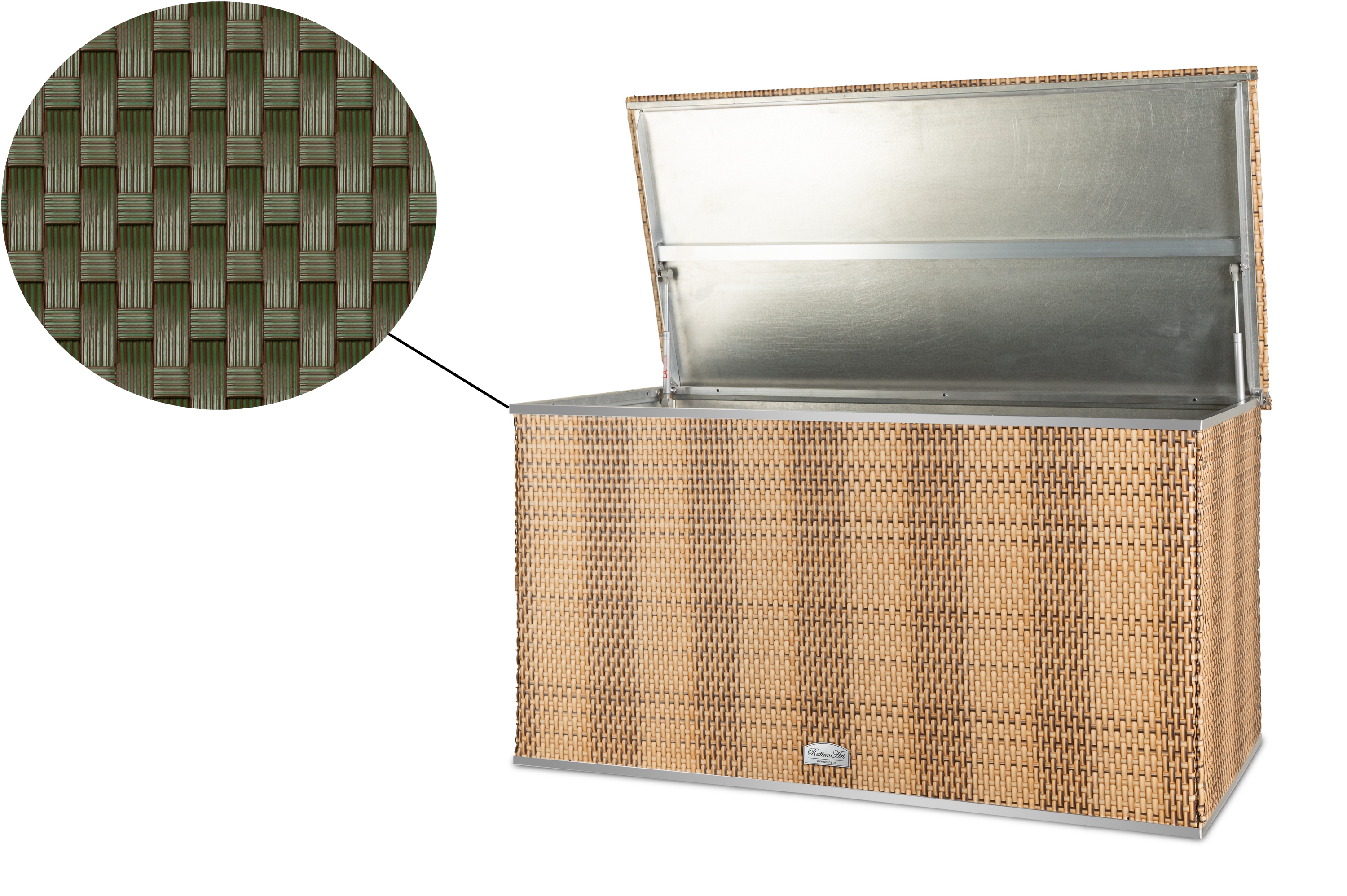 Skrzynia na poduchy z blachy ocynkowanej pokryta technorattanem – składana, elegancka i trwała