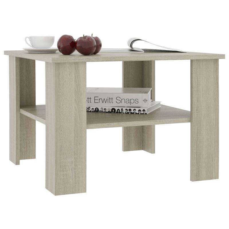 Stolik kawowy został wykonany z płyty, co sprawia że jest wytrzymały, trwały i będzie służył przez długi czas. Solidny blat zapewnia stabilną i bezpieczną powierzchnię, na której można umieścić napoje, wazony, misy z owocami lub dekoracje. Mebel posiada dodatkową półkę do przechowywania, na której znajdzie się miejsce na czasopisma, książki, piloty i tym podobne. Dzięki nowoczesnemu i subtelnemu designowi stolik harmonizuje z pozostałymi meblami.