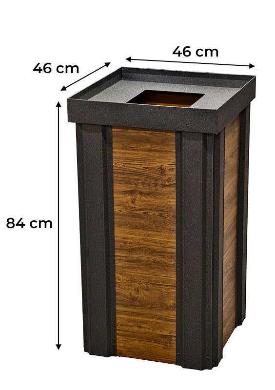 Kosz metalowy ze wstawkami drewnopodobnymi o wymiarach 84x44x44 to elegancki i funkcjonalny element wyposażenia, idealny do nowoczesnych wnętrz. Solidna metalowa konstrukcja gwarantuje trwałość i odporność na intensywne użytkowanie, a dekoracyjne panele o drewnopodobnej fakturze nadają mu ciepły, stylowy charakter. Dzięki swojej estetyce świetnie komponuje się zarówno z aranżacjami industrialnymi, jak i bardziej naturalnymi.