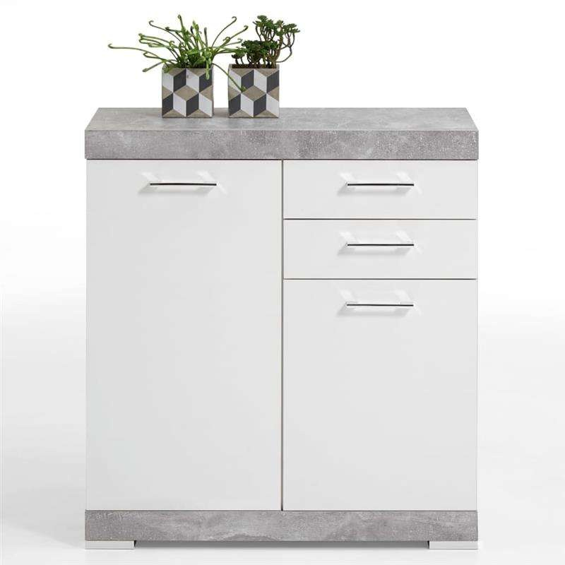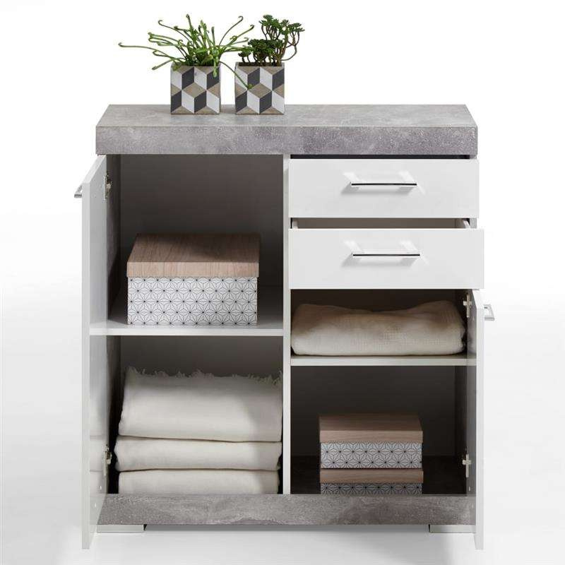 FMD Szafka, 2 drzwiczek i 2 szuflady, 80x34,9x89,9cm, biały i betonowy