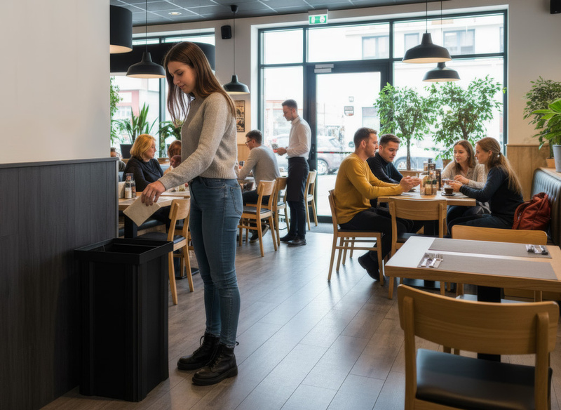 Metalowy kosz na odpady w kolorze RAL 7016 to eleganckie i funkcjonalne rozwiązanie stworzone z myślą o nowoczesnych przestrzeniach publicznych. Jego minimalistyczny design oraz solidna konstrukcja sprawiają, że świetnie sprawdzi się w galeriach handlowych, biurach, holach, pasażach, hotelach czy obiektach użyteczności publicznej. Dzięki uniwersalnej czerni produkt harmonijnie wpasowuje się w różne style aranżacyjne.