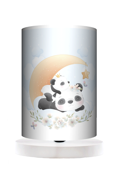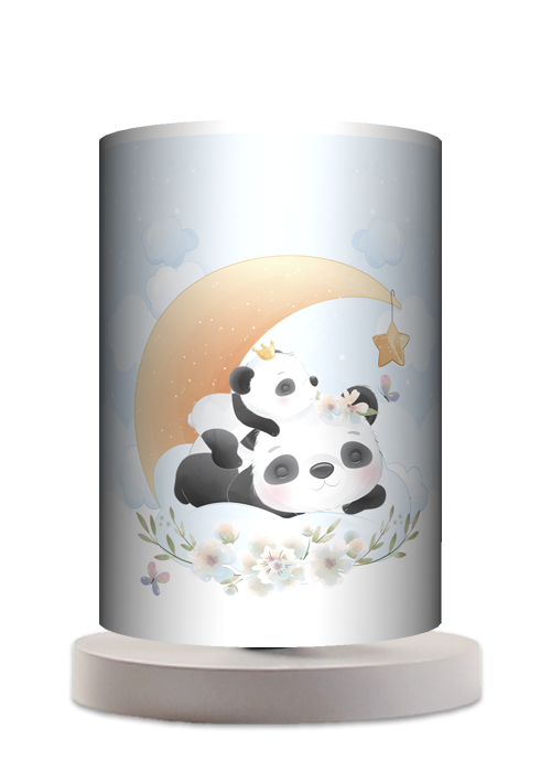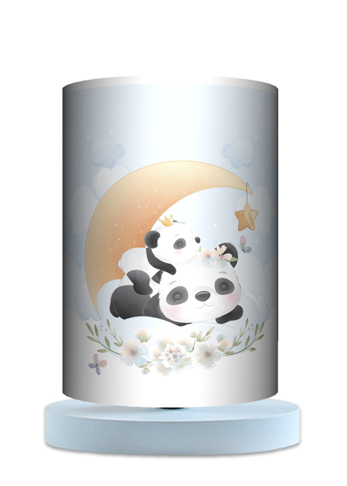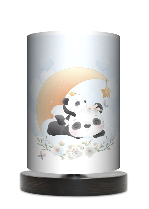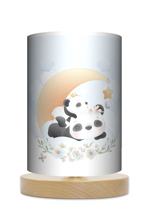 Lampa stołowa - drewniana mała - Cute Panda (niebieska)