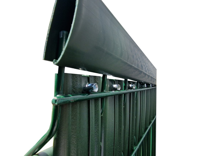 Osłona w postaci listew z tworzywa sztucznego wsuwanych w ogrodzenie panelowe do samodzielnego montażu.