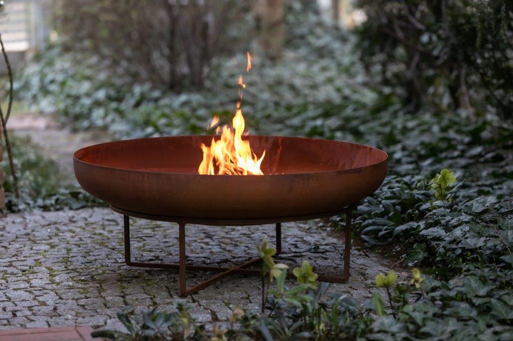 Palenisko ogrodowe wykonane jest ze stali niemalowanej, która z czasem ulegnie procesowi rdzewienia. Rdzawa stal to najnowszy trend w pojawiający się coraz częściej w aranżacjach ogrodów i budownictwie. Najpiękniejszy efekt można uzyskać zestawiając rdzawe dodatki z drewnianym patio, nowoczesnymi meblami i zielenią ogrodowych roślin.