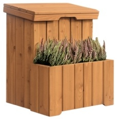 Skrzynia wykonana jest z solidnego drewna, starannie wykończonego w naturalnym, ciepłym odcieniu. Górna część pełni funkcję praktycznej skrzyni z zamykaną klapą, idealnej do przechowywania akcesoriów ogrodowych lub dekoracji. Dolna część to przestronna donica, doskonała do sezonowych, wrzosów, traw ozdobnych lub kwiatów.