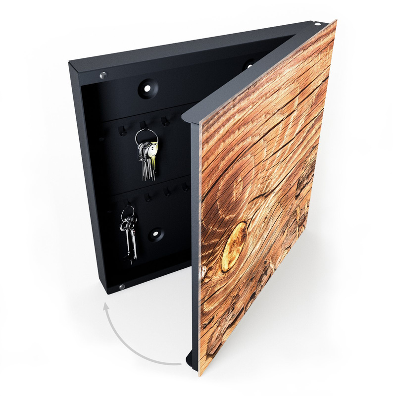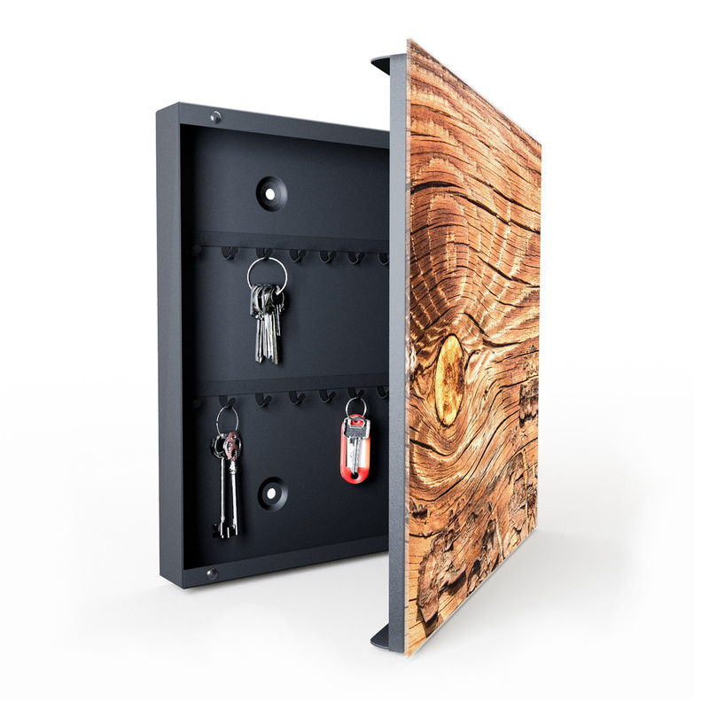Front kasetki na klucze jest w technice laminowania, grafika znajduje się pod szkłem.