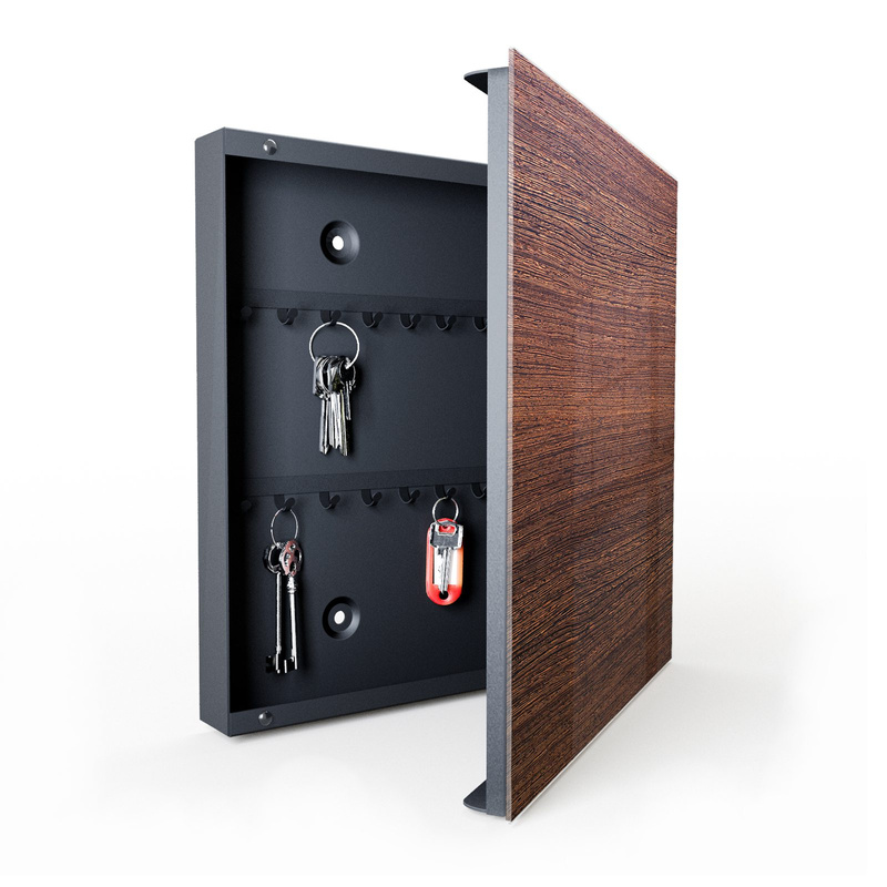 Front kasetki na klucze jest w technice laminowania, grafika znajduje się pod szkłem.