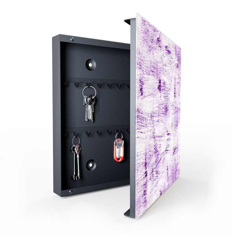 Front kasetki na klucze jest w technice laminowania, grafika znajduje się pod szkłem.