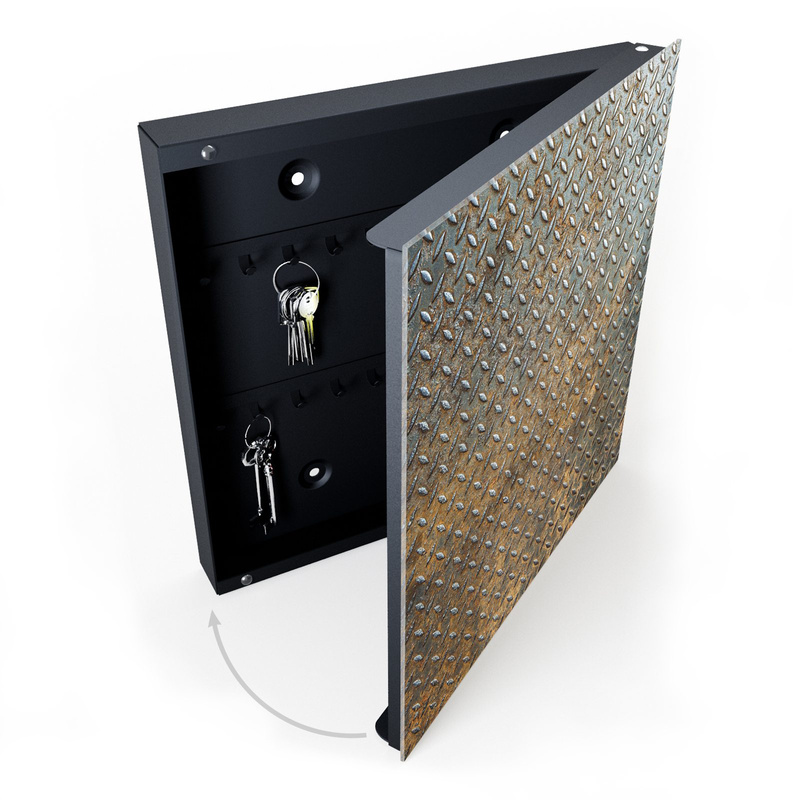 Front kasetki na klucze jest w technice laminowania, grafika znajduje się pod szkłem.